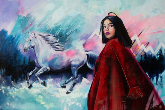 Inspirée de La Reine des neiges de Hans Christian Andersen, cette toile évoque la force, la résilience et l’élan vers ce qui nous attend, même quand le futur est incertain.