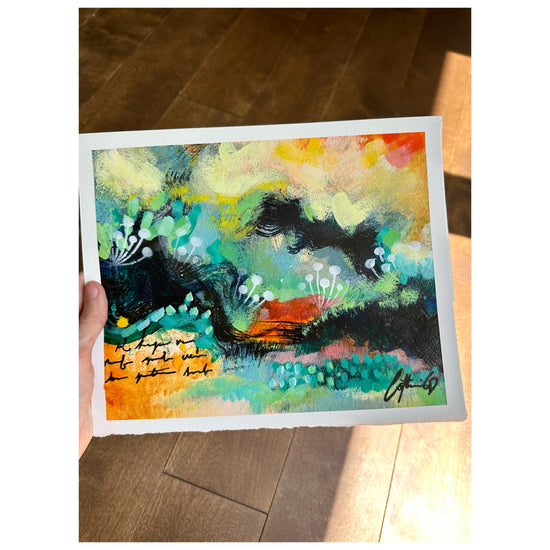 À noter : bien que le passe-partout soit indiqué comme 8x10, il s’agit du format traditionnel dont l’ouverture mesure environ 7.5x9.5 pouces — il recouvre donc légèrement les bords de l’œuvre, comme c’est habituellement le cas en encadrement.